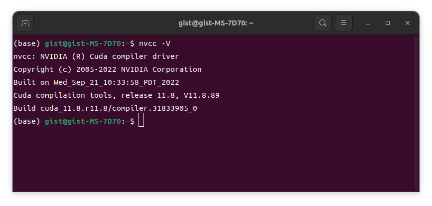 CUDA Toolkit 설치 확인은 아래의 명령어로 진행한다.