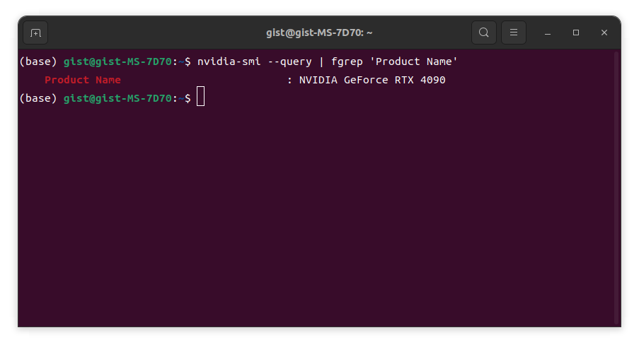 GPU의 모델 명을 출력해주는 명령어는 다음과 같다.